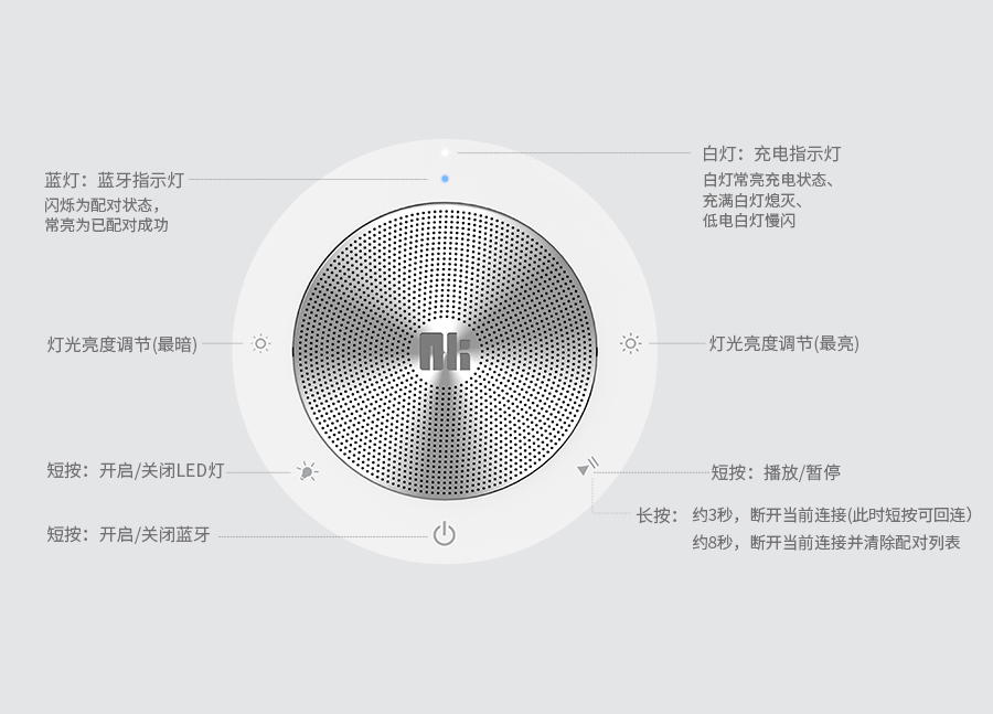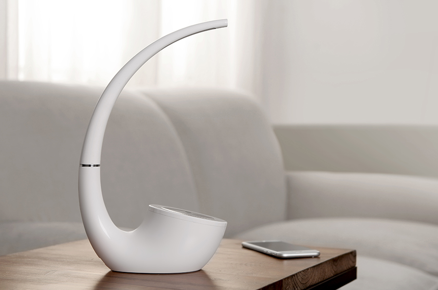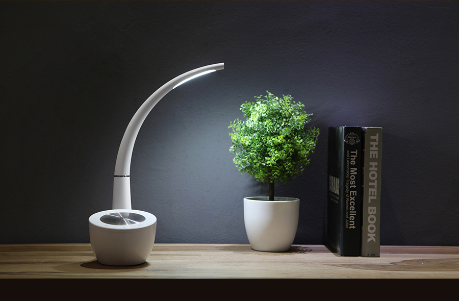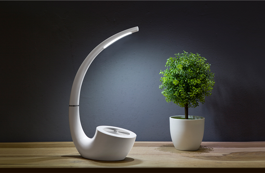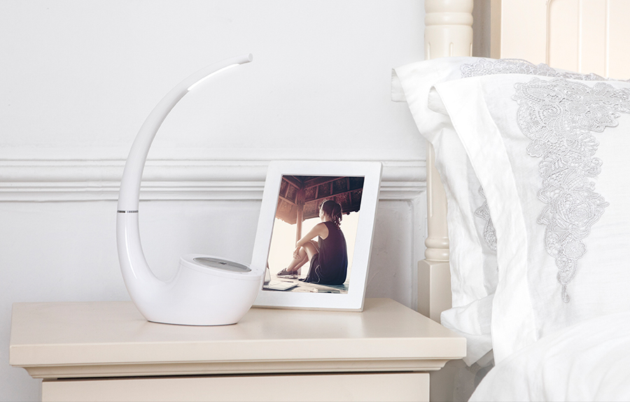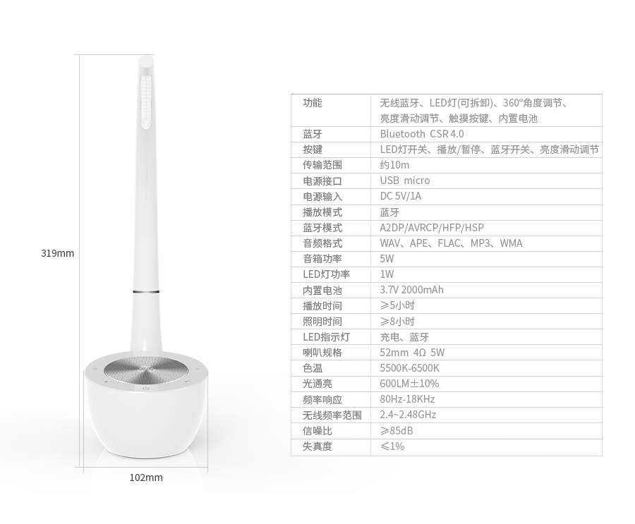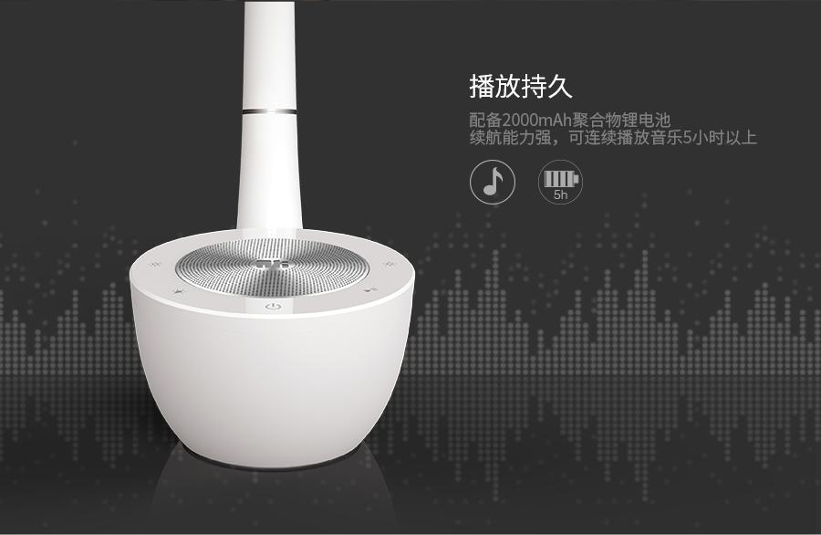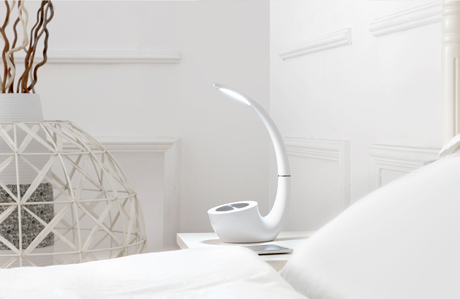 所以我们希望有这么一件产品来满足下内心的需求,缓解一下生活压力,同时为家里增添一份温馨,无论在卧室或书房,它终将起到美化的功能。经过一番精心筛选与设计,由此迎来了我们的幻影系列MC4无线台灯音箱。