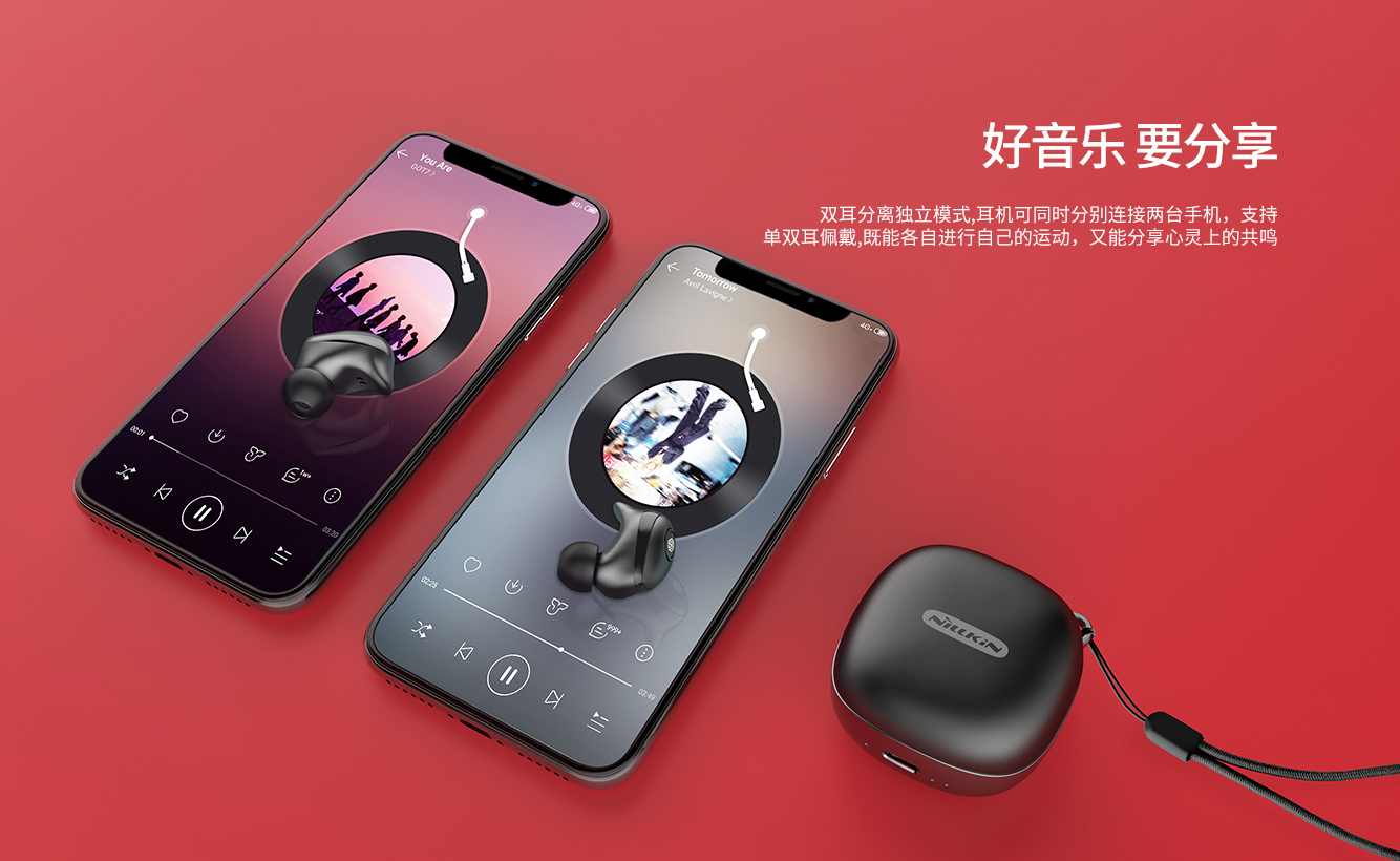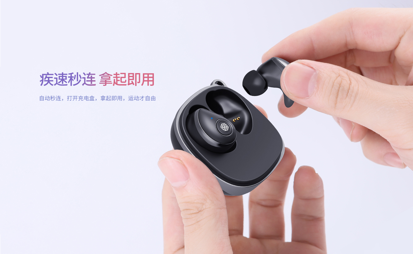 NILLKIN GO TWS蓝牙耳机,采用络达5.0蓝牙方案,MEMS数字麦克风,配合DSP降噪算法,8mm大单元,听得见的好声音,通话清晰如在耳边唇语。人体工学设计,5g轻盈,搭载5h+5次充电总续航,IPX5防水防汗,久戴无累感,让你运动也能天声自由,无论雨天晴天,想听就听,年轻就要玩出味!