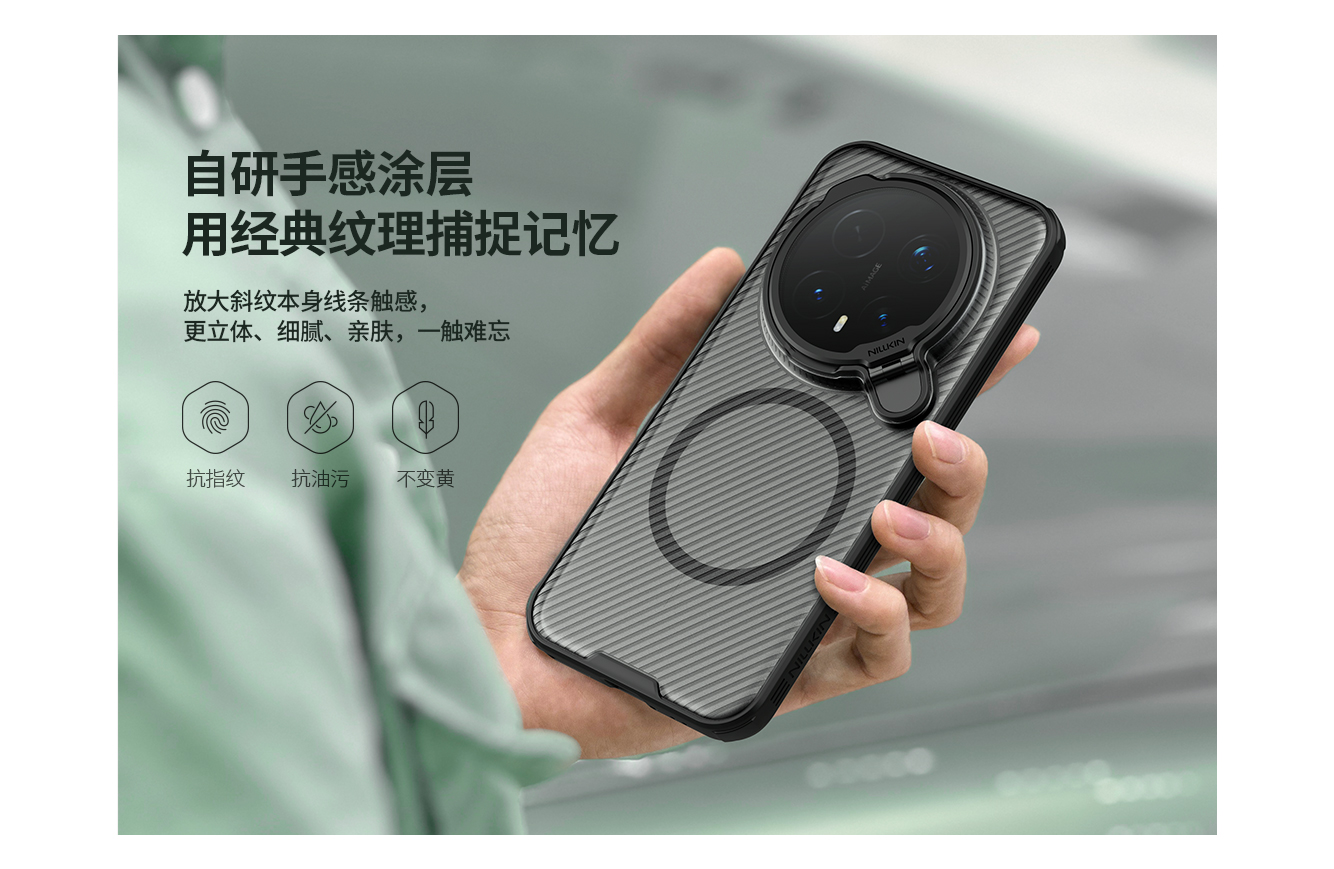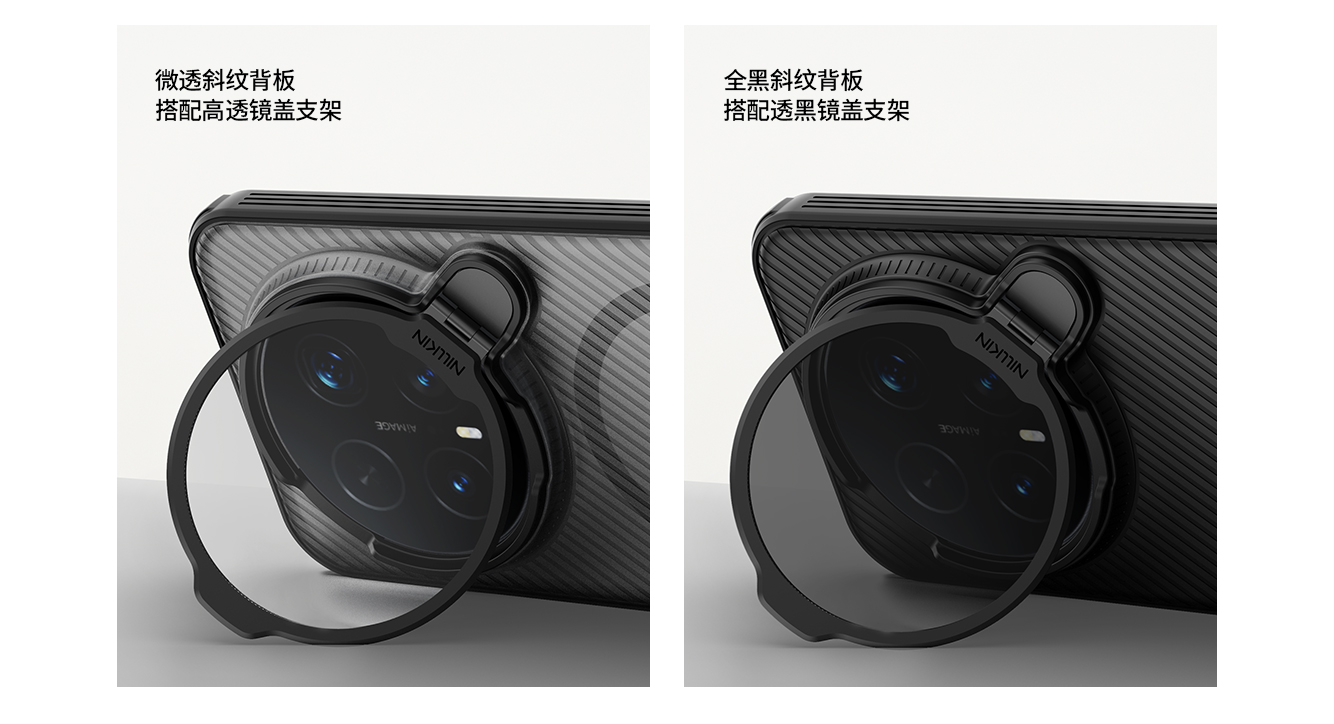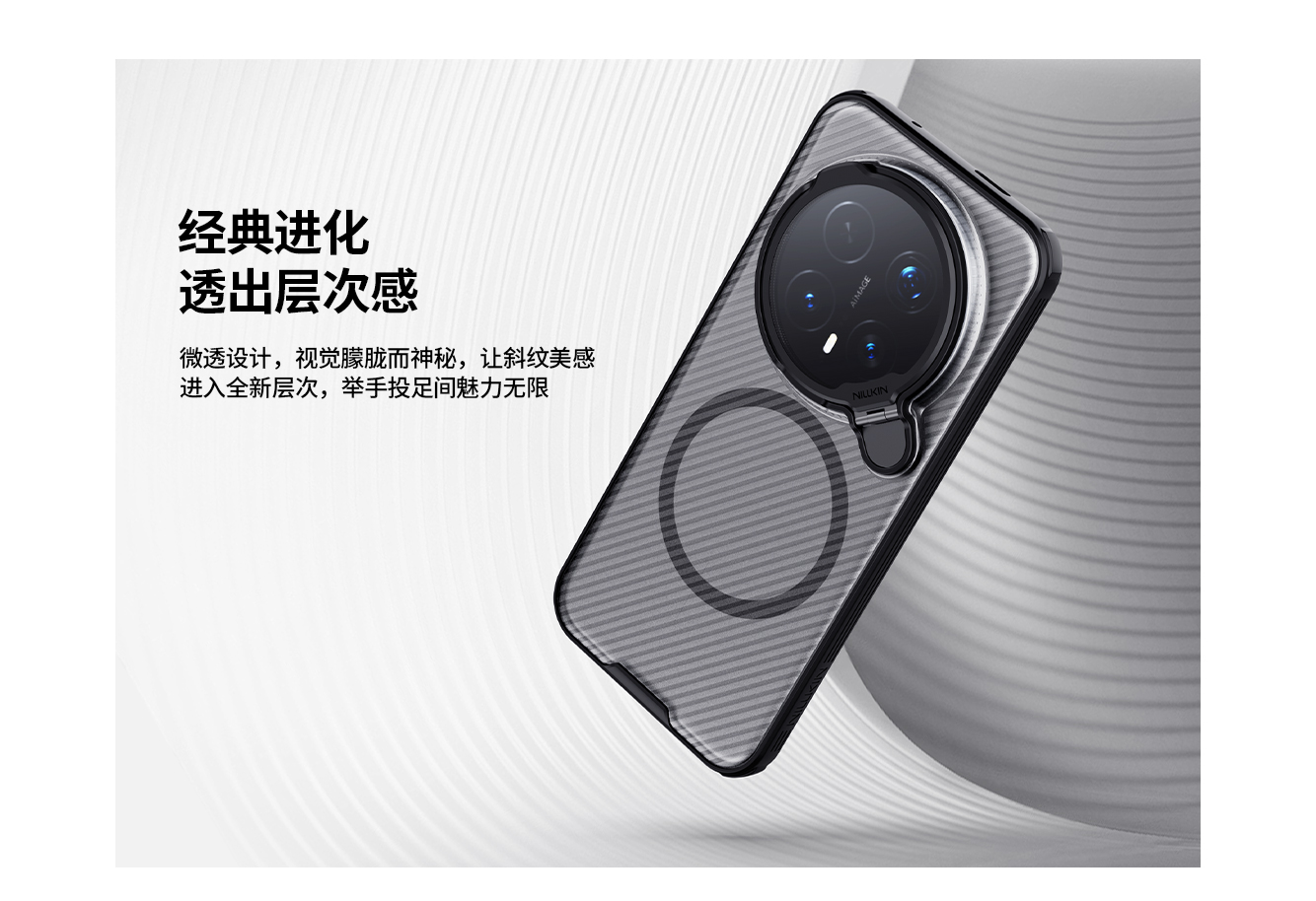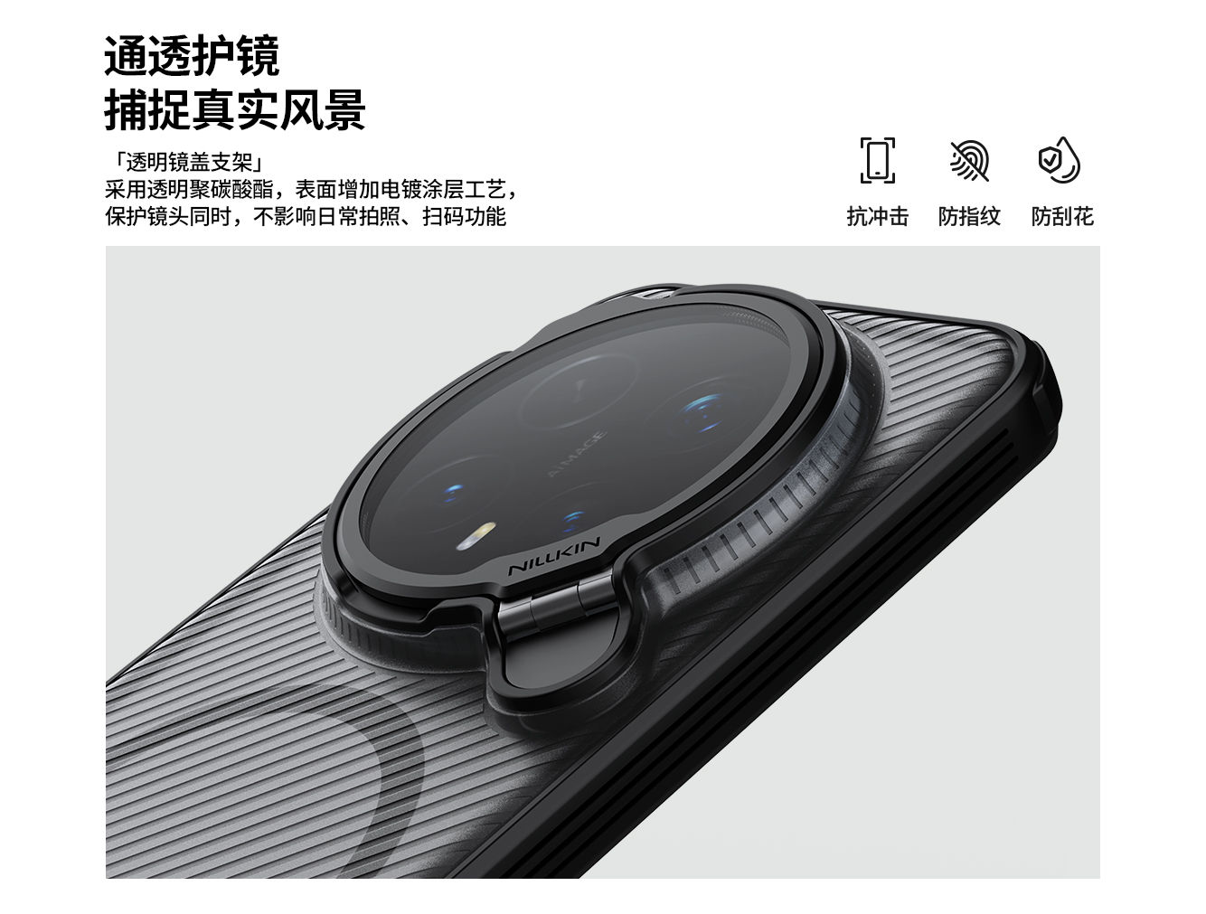 Nillkin经典系列重塑升级,延续灵魂斜纹元素,以微透设计,探索极致视觉体验; 表层手感油处理,亲肤细腻;透明镜盖支架,兼顾镜头保护与手机支撑功能,不阻挡日常拍摄、扫码;升级磁力模组,稳固更便捷;进口环保TPU+PC一体成型,全方位无忧防护。