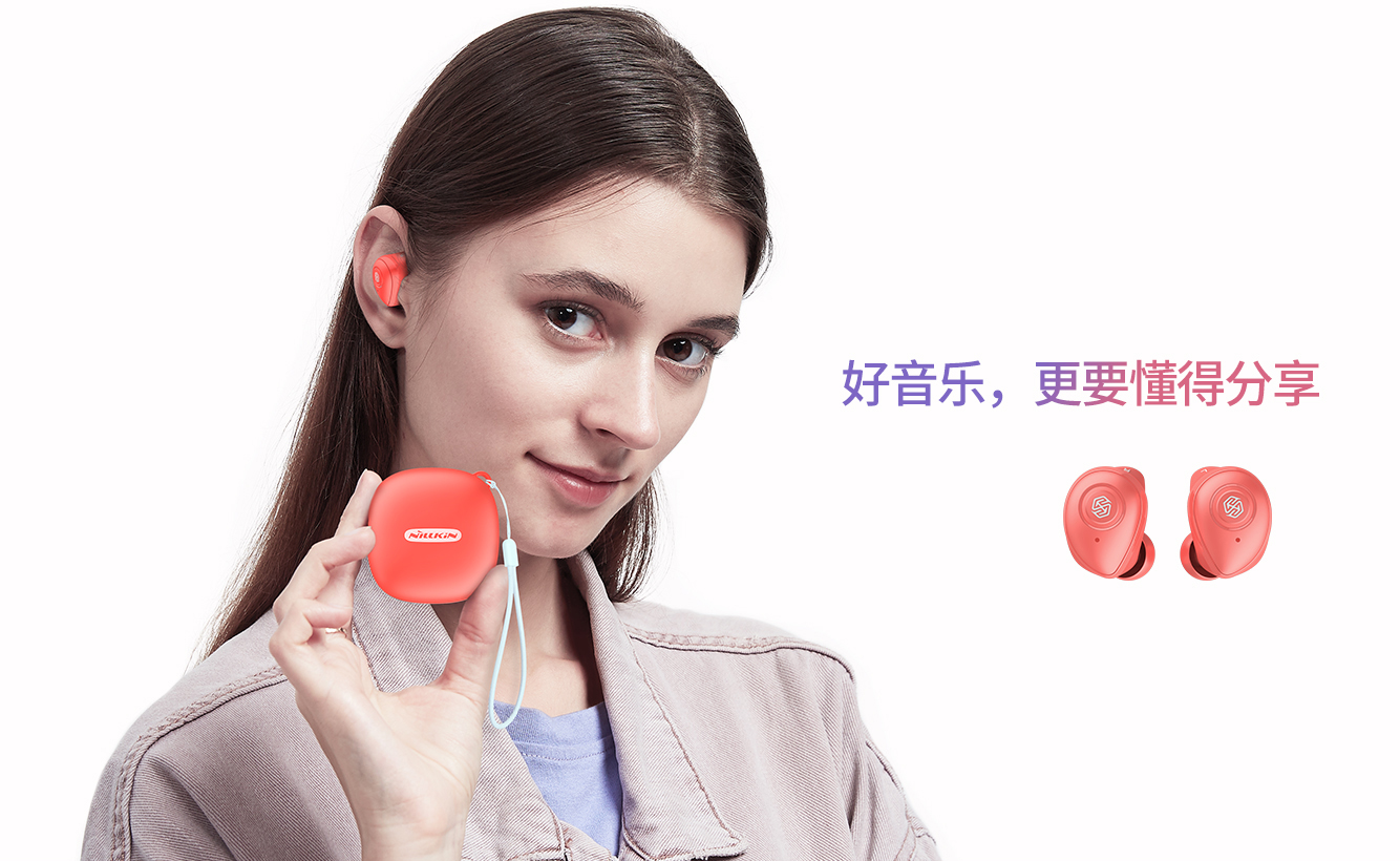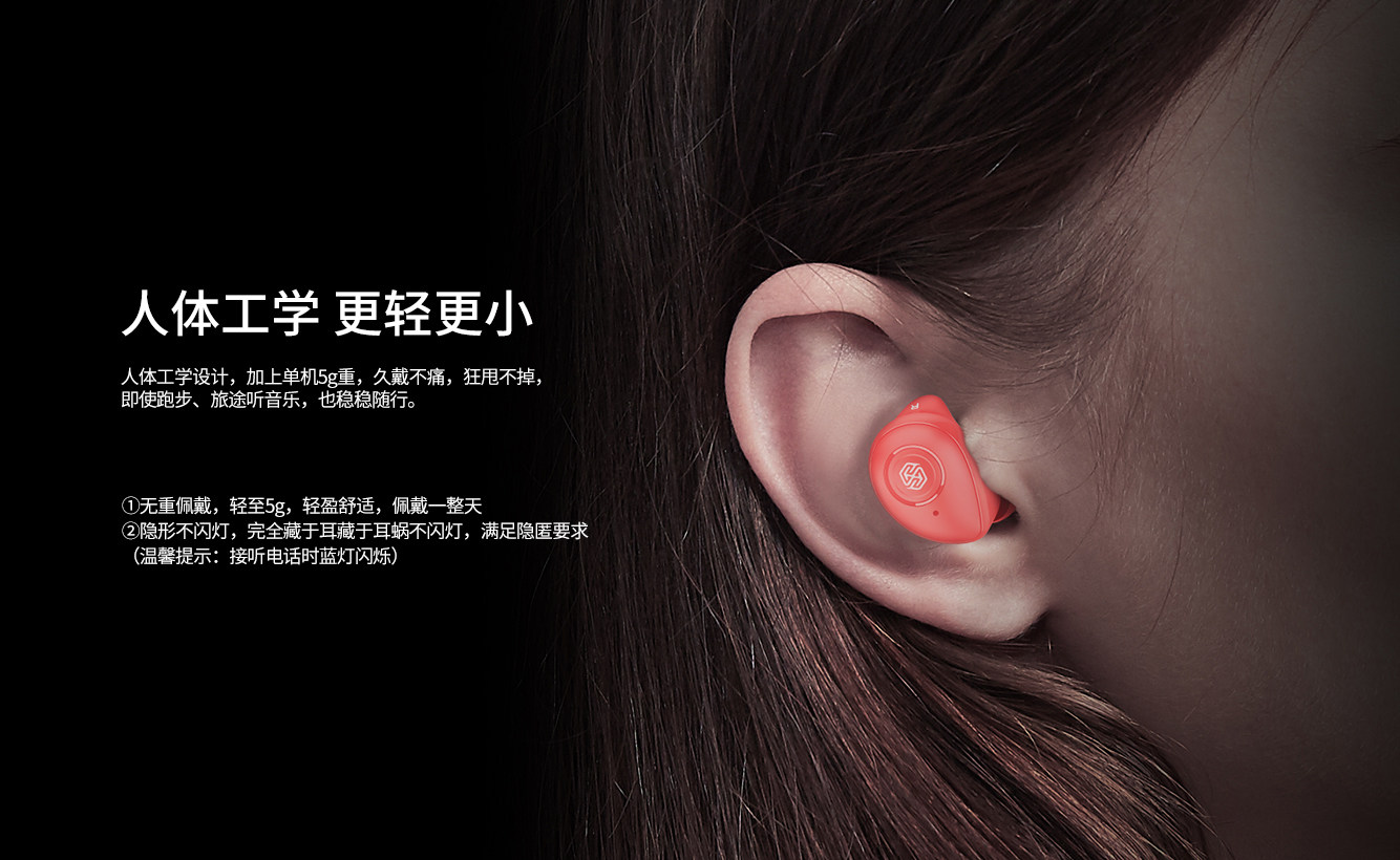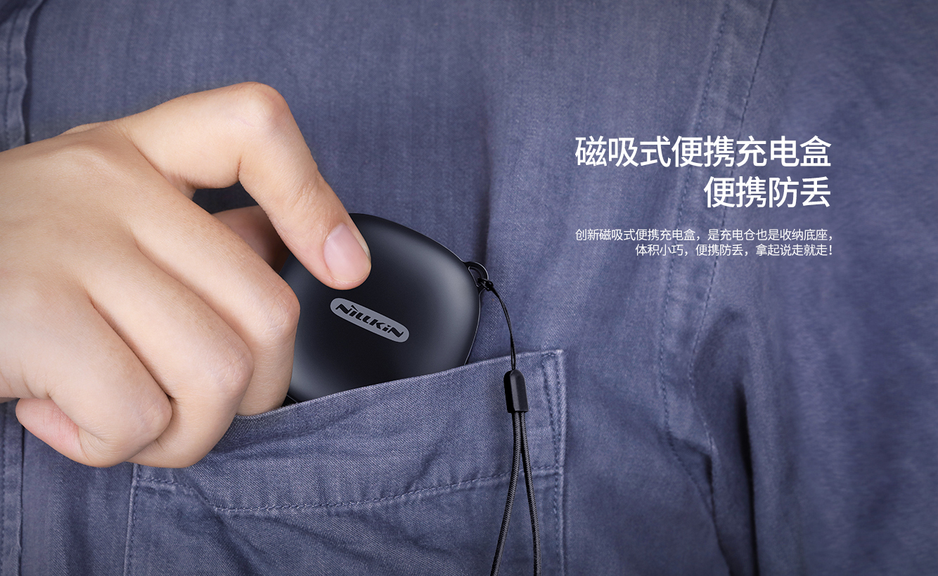 NILLKIN GO TWS蓝牙耳机,采用络达5.0蓝牙方案,MEMS数字麦克风,配合DSP降噪算法,8mm大单元,听得见的好声音,通话清晰如在耳边唇语。人体工学设计,5g轻盈,搭载5h+5次充电总续航,IPX5防水防汗,久戴无累感,让你运动也能天声自由,无论雨天晴天,想听就听,年轻就要玩出味!